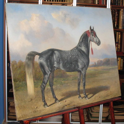 Сверчков Николай Егорович (1817 – 1898), русский жанровый художник, с детства с любовью рисовал животных, особенно лошадей. С 1844 г. его произведения стали появляться на ежегодных академических выставках и вскоре обратили на него общее внимание. В 1852 г. получил звание академика, в 1855 г. – профессорское звание. В середине XIX в. имел большую известность, производя множество картин и рисунков, изображающих породистых лошадей, собак, охотничьи сцены, ухарские тройки, жанровые сюжеты с участием лошадей и повозок. Многократно, до 1882 г., выполнял личные императорские заказы. Его картины находятся в экспозиции крупнейших музеев России и мира и регулярно продаются на известнейших мировых аукционах.