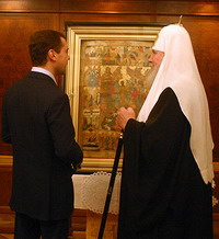 «Благодаря определенной работе, которую провели государственные структуры, эта икона сегодня возвращается, слава Богу, и мне бы хотелось, чтобы она была передана в церковь, чтобы она служила по назначению», –сказал первый вице-премьер на церемонии передачи иконы в Тронном зале Патриарших покоев храма Христа Спасителя.