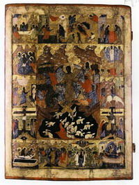 Икона написана в первой четверти XVI века и представляет собой уникальный образец северной живописной школы. В 1991 году она была похищена, переправлена за рубеж и продана любителям древнерусской живописи. Впоследствии она сменила несколько владельцев.
